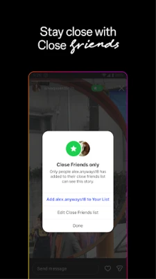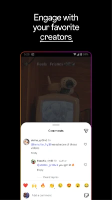 Insta® இல் உங்கள் அனுபவங்களை நண்பர்களுடன் நொடிப்பொழுதில் பகிர்ந்துகொள்ளுங்கள். 24 மணி நேரத்தில் மறையும் ஸ்டோரீஸ் (Stories) மற்றும் நோட்ஸ் (Notes) மூலம் உங்கள் அன்றாட நிகழ்வுகளைத் தெரிவிக்கலாம். உங்கள் நெருங்கிய நண்பர்களுடன் மட்டுமே உரையாடவும், வடிகட்டப்படாத உண்மையான தருணங்களைப் பகிரவும் தனிப்பட்ட குழுக்களை உருவாக்கலாம். அண்மைய நிகழ்வுகள் மற்றும் பயணங்களின் நினைவுகளை ஃபீட் (Feed) பகுதியில் சேமித்து, உங்கள் நண்பர்களுக்குக் காண்பிக்கலாம். உங்கள் வாழ்க்கையை ஒரு திரைப்படமாக மாற்ற வேண்டுமா? ரீல்ஸ் (Reels) மூலம் குறுகிய, சுவாரஸ்யமான வீடியோக்களை உருவாக்கிப் பகிரவும். பிரத்யேக டெம்ப்ளேட்கள், இசை, ஸ்டிக்கர்கள் மற்றும் ஃபில்டர்கள் கொண்டு உங்கள் பதிவுகளுக்குத் தனித்துவமான அழகைச் சேர்க்கலாம்.