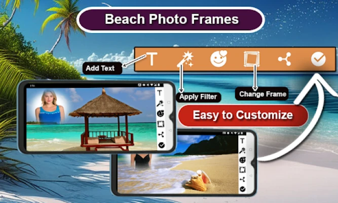 உங்கள் கடற்கரை விடுமுறைப் பயணங்களின் காட்சிகளை மீண்டும் வாழ விரும்பினாலும், அல்லது உங்கள் அன்றாடப் புகைப்படங்களுக்கு ஒரு வெப்பமண்டல வசீகரத்தைச் சேர்க்க விரும்பினாலும், கடற்கரை புகைப்படச் சட்டங்கள் உங்களுக்குச் சிறந்த துணையாக இருக்கும். கடலின் மயக்கும் அழகைக் கொண்டு உங்கள் படங்களை அலங்கரித்து, ஒவ்வொரு நொடியையும் ஒரு புகைப்படக் கலைப் படைப்பாக மாற்றுங்கள். இந்த வசதியான கருவியைப் பயன்படுத்தி, உங்கள் ஒவ்வொரு புகைப்படமும் கடலின் அலைகளைப் போலவே புதுப்பொலிவுடன் திகழட்டும்.
